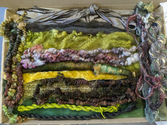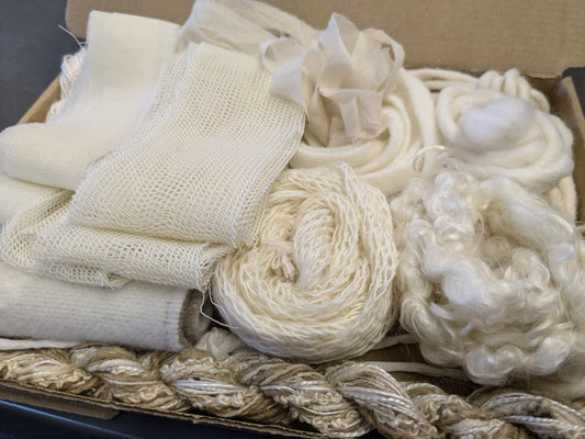 Natural wool/silk creativity packs , experiment with threads, ribbon, yarns