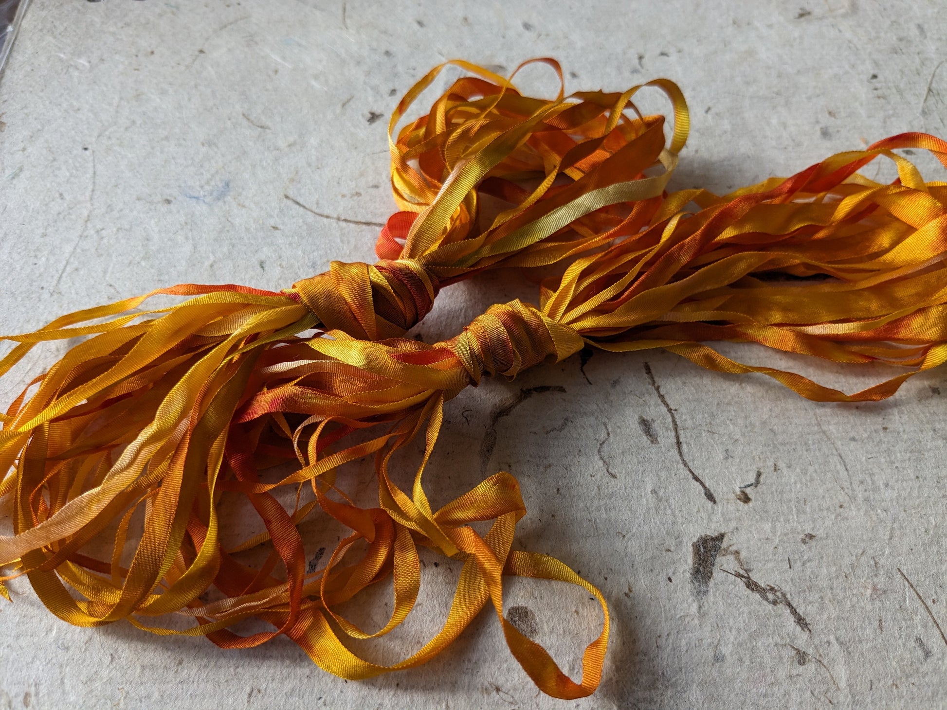 Approx 12m assorted widths of hand dyed silk embroidery ribbons ass width- SR62