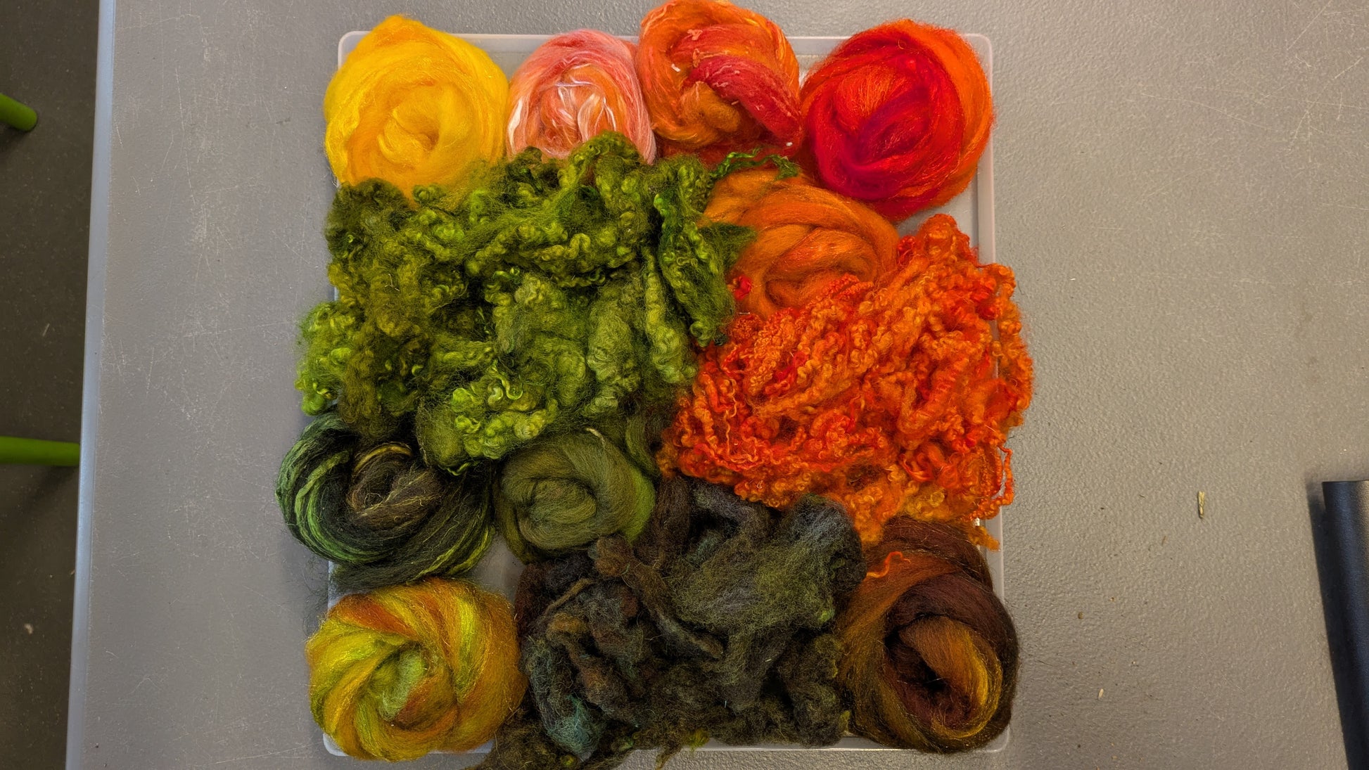 Hand dyed wool mix top and a selection of hand dyed wool fleece, lovely curls and texture. Some of these have added sparkle. Great for creating instant texture in your needle felted or wet felted pieces, this selection I created with autumn in mind.