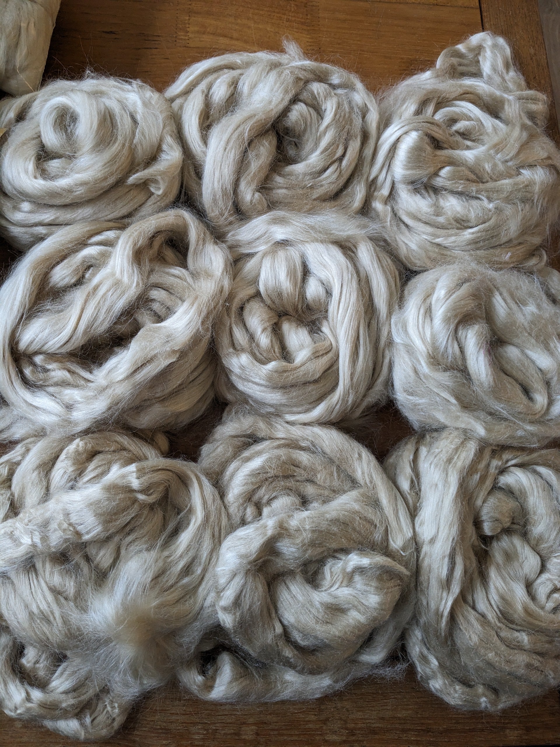 Lovely natural tussah silk broken top ideal for adding texture to your felted creations or using in silk paper making or spinning. Bleached tussah has a much softer sheen than mulberry silk. Will only be in one or two pieces( not lots of short lengths)
