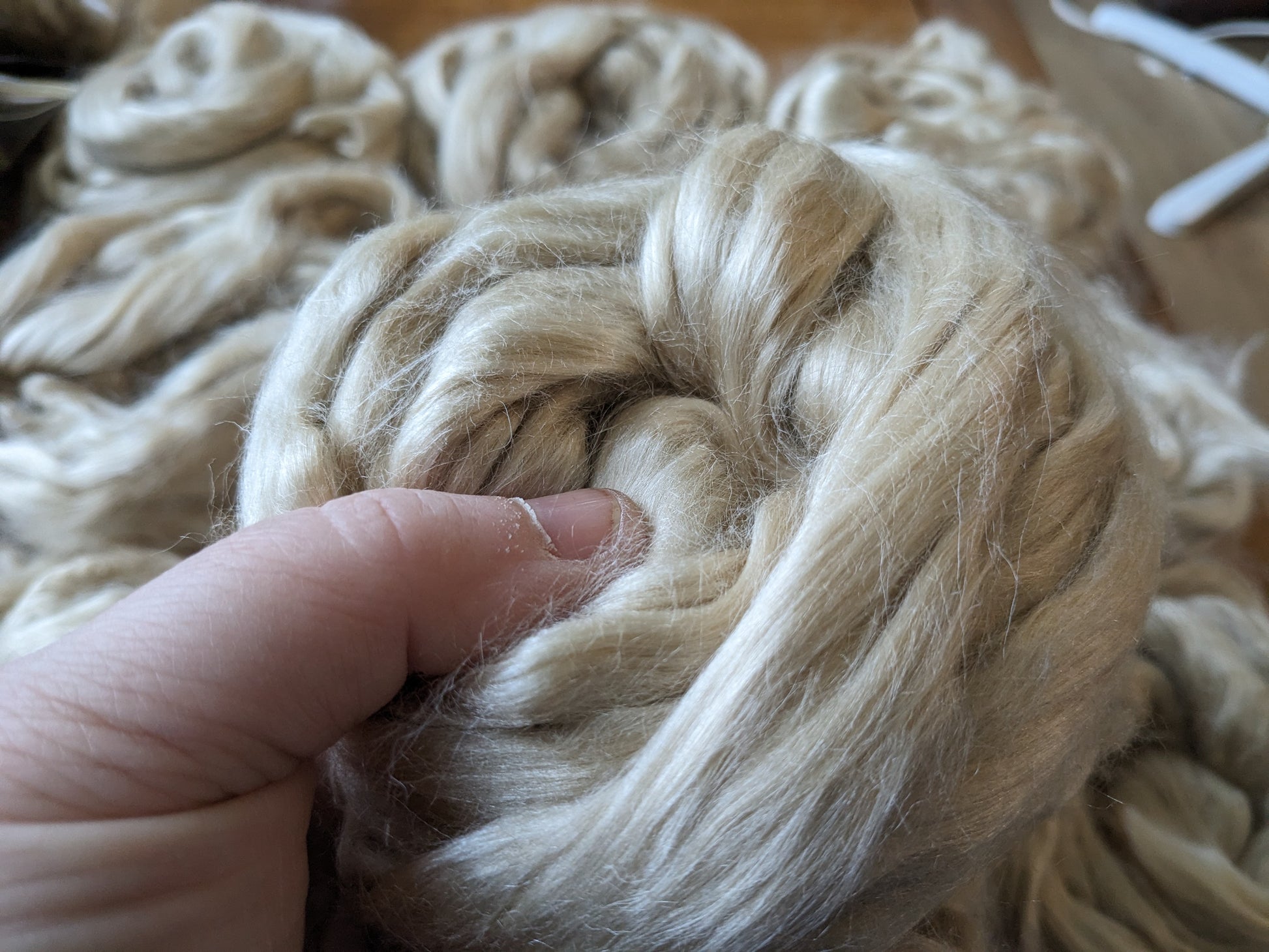 50g natural silk fibres - tussah silk broken top